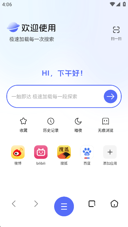 多维搜索功能:支持多搜索引擎自由切换,文字输入即可快速定位网页、资讯等资源;配备拍照搜索与二维码扫描功能,对准图片或码类即可识别商品信息、文字内容或跳转链接,满足多元查询需求。