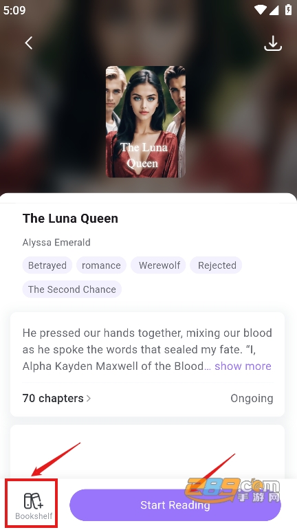 用户们挑选完小说后,可以点击“bookshelf”,将喜欢的小说加入书架,也可以直接点击“start reading”,开启自己的免费阅读之旅
