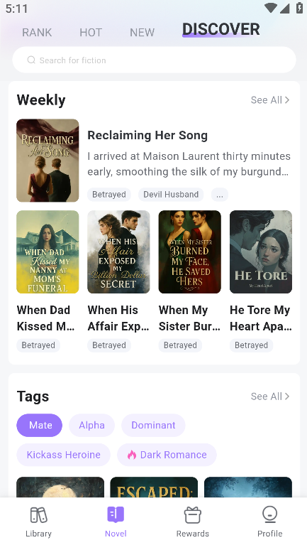 RocNovel以海外优质小说为核心内容,资源储备丰富且题材多元,能满足不同读者的阅读偏好。库中既有经受时间考验的经典故事,也有最新流行的畅销网络小说,涵盖浪漫、狼人题材、都市情感、复仇等多种类型,同时通过动态排名和热门精选板块,实时更新文学界热门读物,让用户轻松掌握最新阅读趋势,快速找到下一本感兴趣的作品,无需担心书荒问题。