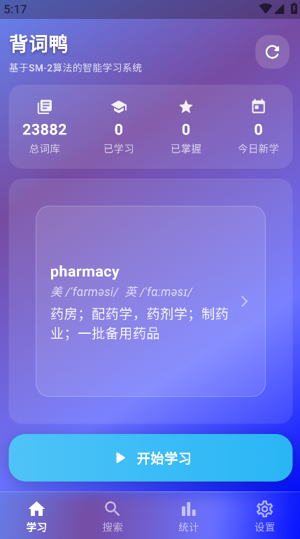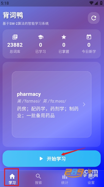 打开app,用户们可以在学习页面点击“开始学习”,开启自己的背单词之旅