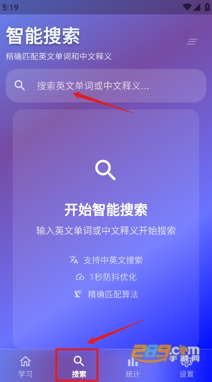 用户们也可以在搜索页面搜索自己不懂的英文单词,了解单词的中文意思和具体用法