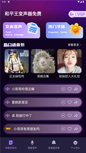 在本站内下载安装并打开和平王变声器免费app,在底部导航栏找到并点击“语音变声”板块。