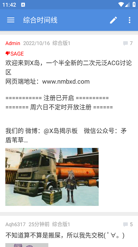在本站下载并安装蓝岛匿名版,首次进入将显示“综合时间线”,顶部会提示社区基础信息,建议先浏览版规与岛规,避免违规操作。