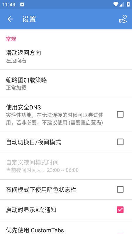 3、除日/夜间模式外,还支持“发送前手动选择饼干”“启动时显示X岛通知”等细节设置,用户可根据使用习惯调整,提升个性化体验。