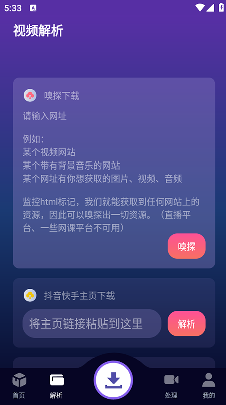 2、下载流程简单,仅需“粘贴链接→解析→下载”三步。