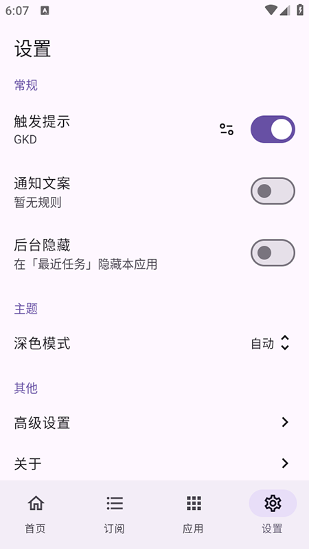 5、支持“后台隐藏”功能,在手机“最近任务”界面中隐藏GKD应用,避免误关闭。