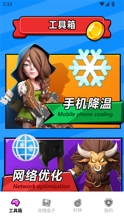 双维辅助一站式保障:突破单一工具局限,打造“游戏+设备”双维辅助体系。一方面整合攻略、百科、高手视频等游戏内容服务,另一方面配备降温、网络优化等设备维护功能及时钟类效率工具,从玩法提升到设备适配提供全链条支持,精准解决玩家“查攻略”“怕卡顿”“需计时”等多重痛点,实现一站式游戏保障。