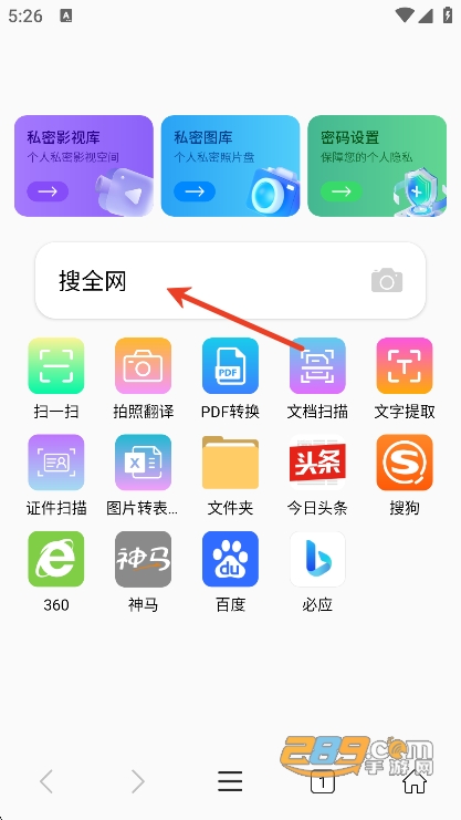 打开app,用户们可以直接在搜索栏搜索自己需要的资源或者自己喜欢浏览的网站
