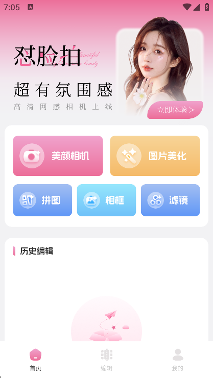 打开app,用户们可以直接点击“美颜相机”,开启自己的拍照之旅