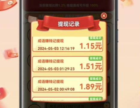 答对成语题目即可赚取相应的红包奖励,答对题目越多赚取的收益越多。