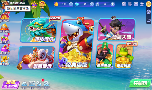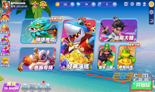 然后玩家可以点击“开始玩”,开启自己的捕鱼之旅