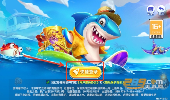 进入游戏,玩家直接点击“快速登录”,开启自己的捕鱼之旅