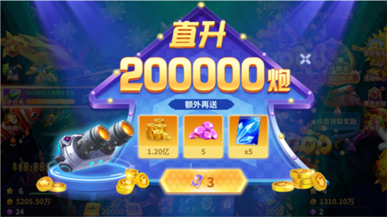 4、丰富的奖励系统: 捕获的鱼可以兑换金币和宝石,用于升级武器或购买特殊道具,提升游戏体验。