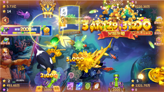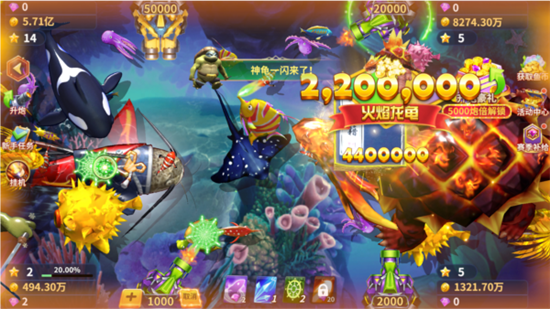 2、丰富的捕鱼武器和道具: 游戏内有多种武器和道具可供选择,例如火炮、激光炮、导弹等,这些都能帮助玩家轻松捕捉到大鱼。