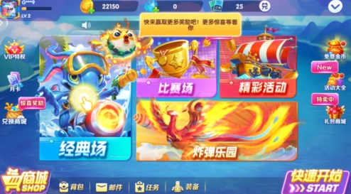 进入游戏,玩家直接点击“快速开始”,开启自己的捕鱼之旅