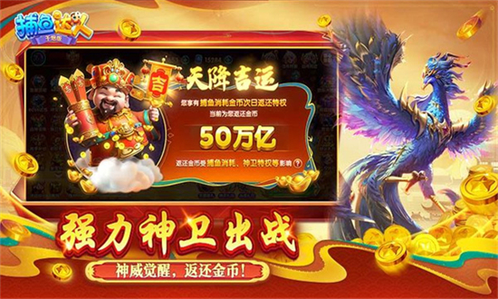 逐步提升炮台威力:消耗金币可升级炮台威力等级,使其发射的子弹杀伤力更强,不仅能缩短捕鱼时间,还能更轻松捕获高价值珍稀鱼类,提升收益效率。