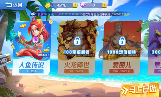 1、渔场选择:初期优先在“经典场”练手,该场鱼群密集、BOSS难度低,适合积累金币;待金币达到200000以上、解锁1000炮倍后,再进入“龙晶场”“美人鱼场”挑战高倍鱼群,避免资源浪费;