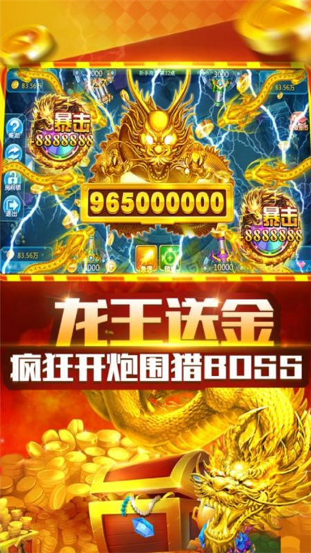 4、福利与成长体系游戏内提供丰富奖励机制,通过完成捕鱼目标、关卡挑战或BOSS战,可获取金币、钻石、炮台等资源,助力玩家提升实力,解锁更多玩法。