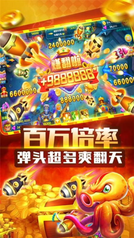 3、还原游戏厅快感通过“百万倍率”“超多弹头”“一炮七杀”等设计,高度还原线下游戏厅捕鱼的刺激体验。