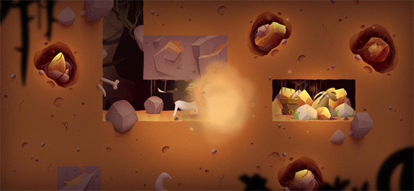 挖掘探索与路径规划:核心操作通过点击屏幕控制挖掘方向,清理碎石、凿开石壁开辟道路,同时需避开滚落的巨石、尖刺陷阱等危险。探索时要优先标记发光裂缝、压力开关等互动元素,制定“探路→收集→解谜”的顺序,且挖掘导致地形改变后部分区域无法返回,需提前规划路线避免遗漏宝藏。