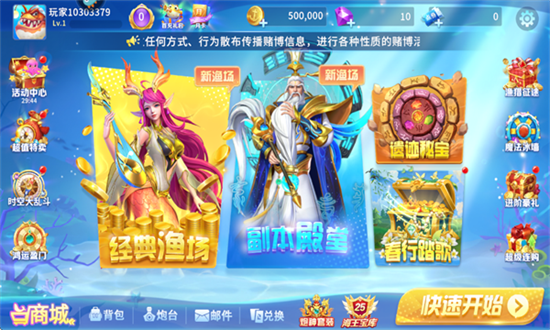 多元赚钱玩法拓展:除核心技巧外,完成各类小任务也能赚取丰厚收益,前提是需开启高级炮与高倍率。同时,参与进击的河豚、黄金鲨捕捉、电鳗捕获等特色玩法,既能收获乐趣,又能提升赚钱效率,实现娱乐与收益双丰收。