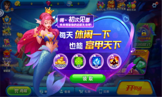 这款游戏点击开始游戏进入游戏画面,即可得到游戏的奖励,然后点击你要猎捕的鱼类,下面的炮位就会自动向你所指的方位射击,也可以点击锁定将炮位的方向锁定。