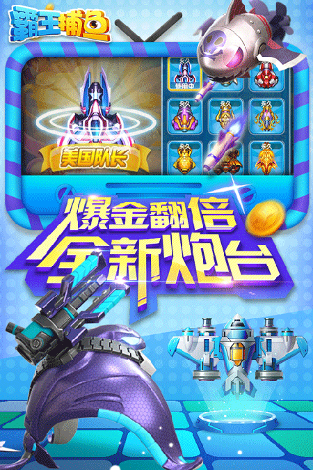 3、炮台成长与个性化外观设计炮台养成体系,通过捕鱼积累“炮台碎片”,可解锁“霸王炮”“雷霆炮”等特色炮台。