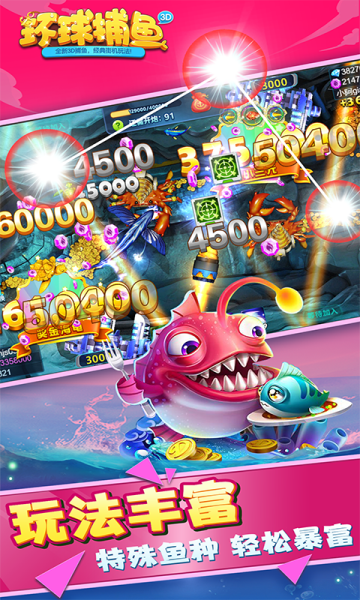 环球捕鱼是一款主打“社交联动+3D拟真生态”的创新街机风捕鱼手游,以动态深海场景为基底,融合宠物协作、跨服竞技与微信社交玩法,打造兼具策略深度与互动乐趣的沉浸式捕捞体验。
