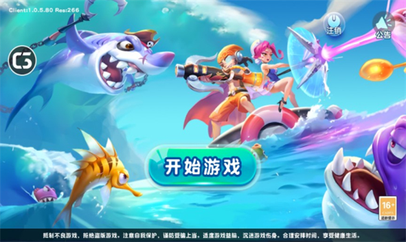 进入游戏,玩家先点击“开始游戏”,开启自己的欢乐捕鱼之旅