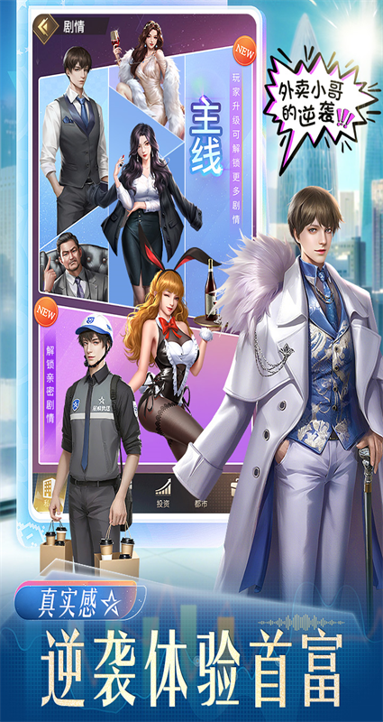 逆袭叙事的沉浸体验:以“从外卖员到总裁”的强反差剧情为核心,穿插债务危机、商战交锋、情感互动等元素,配合短信回复、剧情抉择等设计,让玩家深度代入商业逆袭历程,满足“白手起家”的成就感。