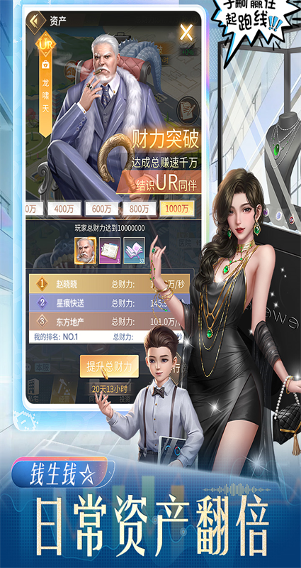 逆袭剧情与商业场景:主线围绕主角被上司陷害背负数亿债务展开,从经营路边便利店起步,逐步解锁网红咖啡馆、贸易中心等多元业态,场景覆盖老城区、金融街等不同商业区域,还原从底层打拼到掌控银行帝国的全过程。剧情中穿插与美女角色的互动、商业对手的刁难等事件,解锁子嗣培养、座驾升级等支线内容。