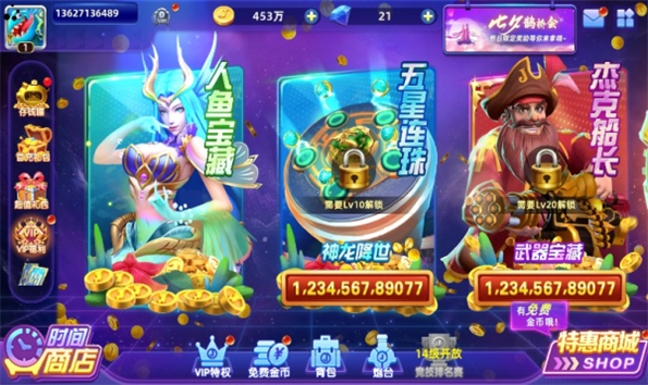 玩家可以畅游深海渔场,不断升级到杰克船长的渔场