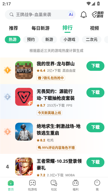 首页游戏应用排行