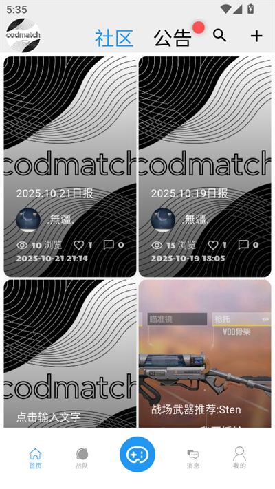 CODMATCH使命召唤社区app是专为《使命召唤》系列游戏玩家打造的热血交流阵地。在这里,玩家能第一时间获取游戏最新资讯、攻略秘籍,与全球战友探讨战术策略;还可参与丰富多样的社区活动,结识志同道合的伙伴,组队开黑并肩作战。无论是分享游戏高光时刻,还是吐槽对战趣事,都能尽情畅聊。有需要的就来下载吧!