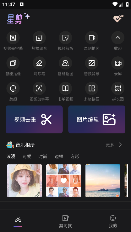 星剪APP是由北京锐动天地信息技术有限公司开发的免费移动端全能视频编辑软件,整合专业剪辑功能与AI智能技术,以“一键去重”为核心优势,覆盖从素材获取到成品输出的全创作链路,既降低新手操作门槛,又能满足自媒体人、短视频创作者的效率与创意需求,是一款兼顾轻量化与专业性的视频处理工具。