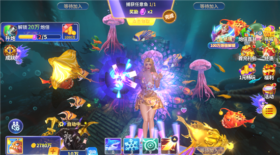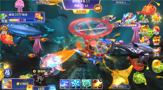 金币系统:通过捕获鱼类获得金币,用于升级炮台、购买道具等